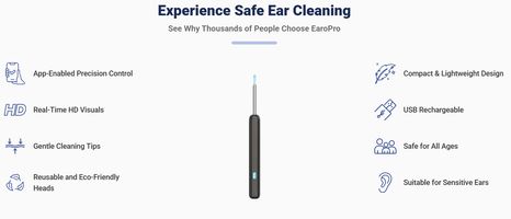 The EaroPro Earwax Remover is an advanced device designed to safely and effectively remove earwax from the ears. Unlike traditional ear cleaning methods, such as cotton swabs, that can push the earwax further into the ear canal, EaroPro uses gentle suction and a specially designed tip to extract the earwax without causing harm to the delicate structures inside the ear.